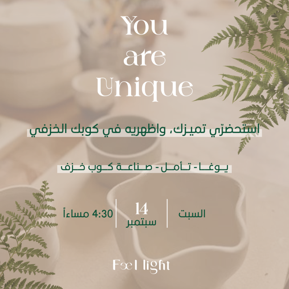 انضمي إلى ورشة يوغا وصنع كوب خزف مع Feel Light واستمتعي بتجربة استثنائية تجمع بين الهدوء والإبداع