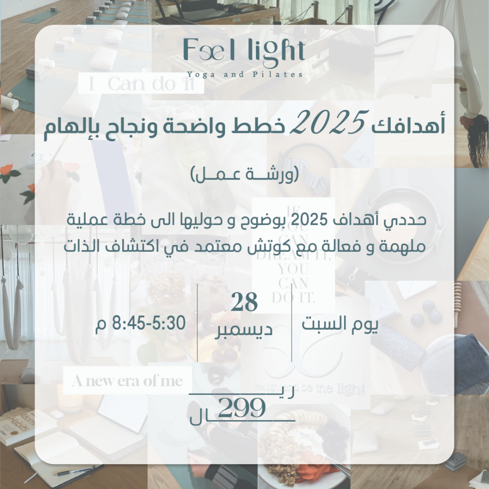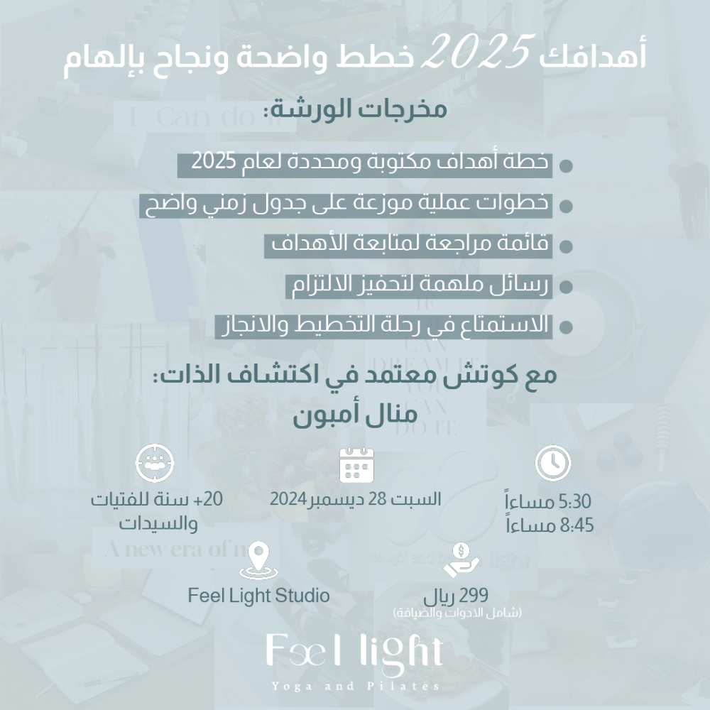 انضمي إلى ورشة عمل أهداف 2025 مع Feel Light وضعي حجر الأساس لعام مليء بالإنجازات والتقدم